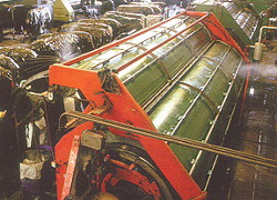After coming out from the drums, the fleshing machine take away any flesh or fat that could still remain on the flesh side of the hides.